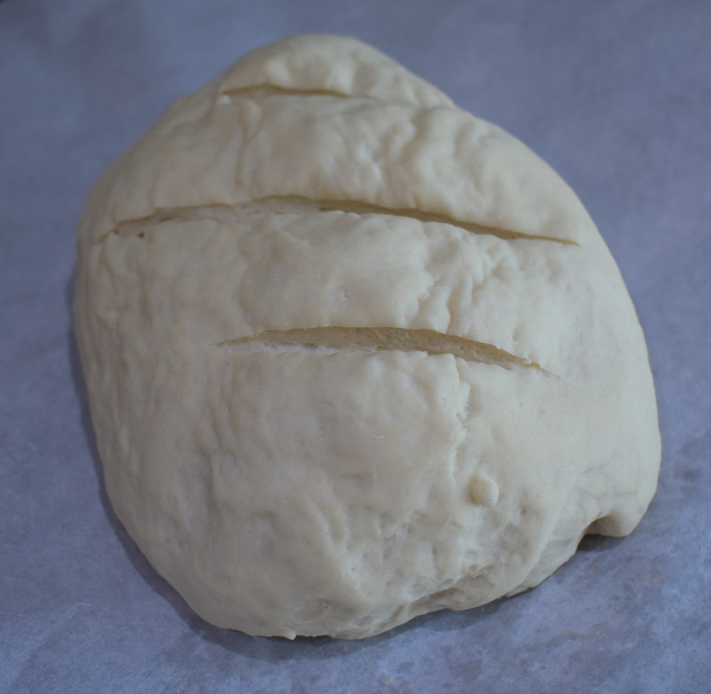 - When your oven is warm and the loaves have risen again, get yourself a knife and slice 2 or 3 (depending on size) cuts into the top of the loaves. Then place the loaves on the centre rack of your oven and bake for 20-25 minutes until the bread turns a nice golden brown. A great way to check if the loaf is cooked through is to turn it over and tap on the base if it sounds hollow it’s done.