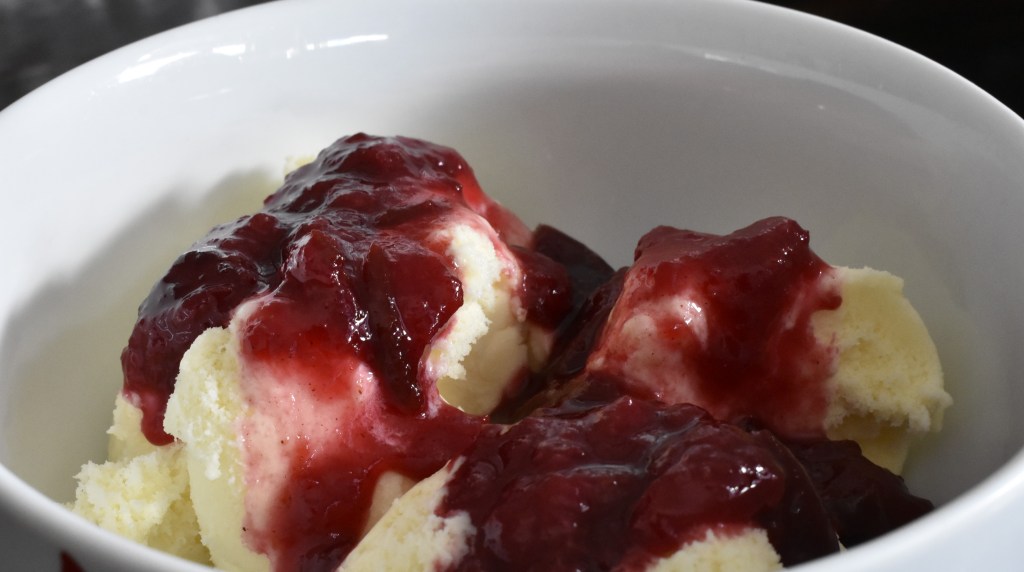 Not only are they great on ice cream as is, but provided you account for the extra moisture, any stewed fruit can also be mixed through cake batter.