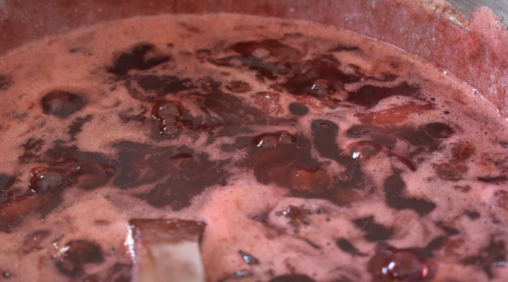 Place all the ingredients into a large, thick-bottomed pot and bring to a boil, stirring occasionally. Once the pot is boiling, reduce the temperature and allow the plums to simmer. At this point, you may need to check the taste and add extra sugar if it’s not sweet enough for you. Allow the plums to simmer for 30 minutes, stirring occasionally.