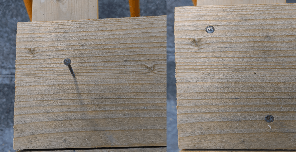 The best way to go about this is to stick a nail in one corner and, once it’s in, put another in the opposite corner. Avoid nailing something in the dead centre, as it won’t hold anything.
