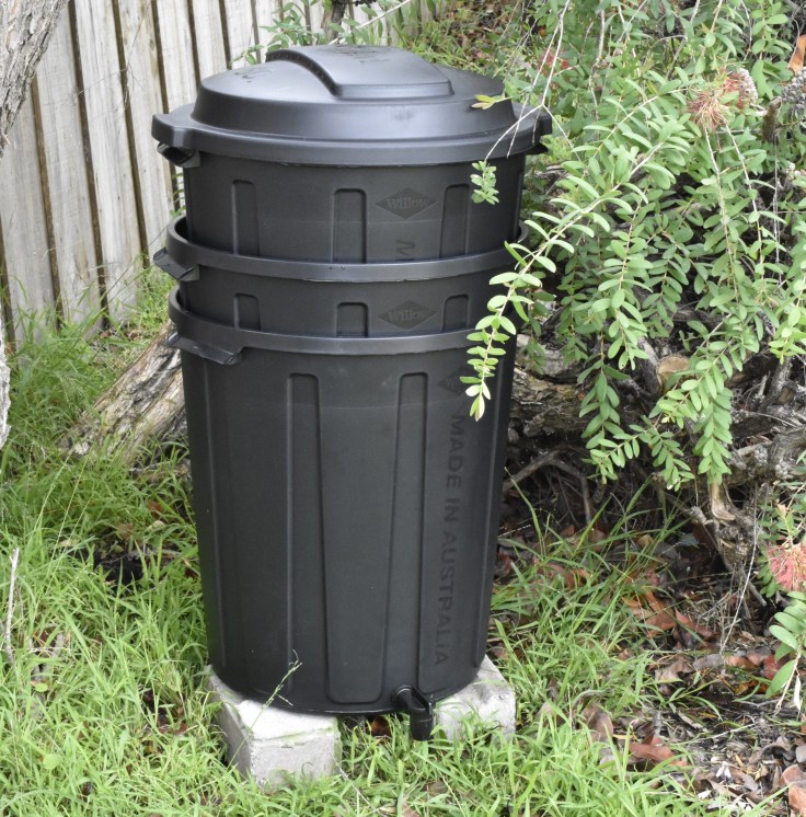 Now that you know what to put in your compost, you’re ready to start. From here, you must decide what to compost them in. A key point to consider here is the amount of waste you can supply it with and how much compost you want/need. There are a lot of compost bins in kits you can get; some are as simple as a bottomless plastic bin that can be sat anywhere, and when you’re ready to collect the finished compost, you simply lift the bin off the pile, and you’re ready to start again. I purchased one of these for my backyard; it’s 150 litres in capacity and costs $55. Overall, it’s not a bad deal.