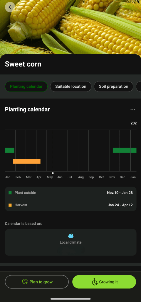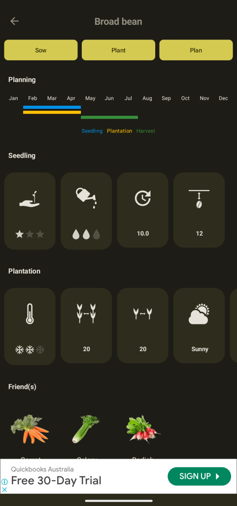 As well presented and polished as this app looked, like so many more, the cracks began to appear after looking at it long enough. The dates that the growing Calendar gave seemed off, but as I said earlier, lumping an entire continent into one growing region is bound to cause some trouble with sowing guidelines. At one point, the app also recommended that now is the perfect time for me to plant my pineapple plants. I can’t say I’ve ever heard of pineapple being grown this far south in Tasmania, especially as we enter winter.