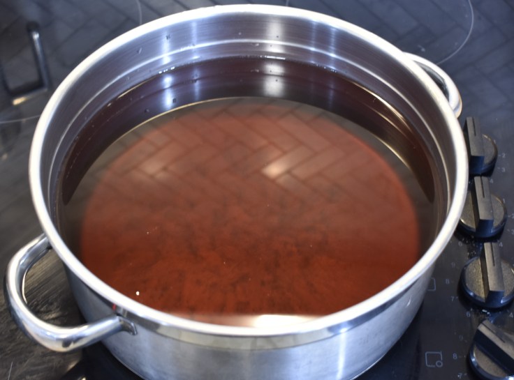 - Pour 2 litres of water into a large stainless-steel pot and heat on low to medium heat. You don’t want it to boil; it only needs to be warm enough to dissolve the honey.