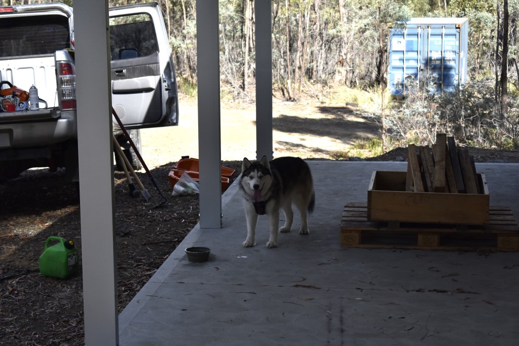 You may have noticed the roller door in the above photo. When designing the shed with the manufacturer, I decided to leave the roller door there so it could be used as a shed/workshop for when I finally get around to getting an actual house put on the property. At the moment, though, it’s a great shelter while I’m working out there.